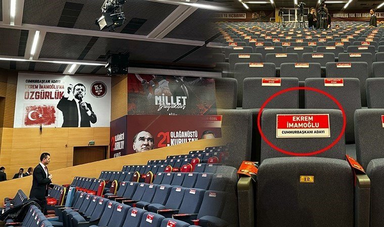 Qurultayda partiyanın prezidentliyə namizədi, hazırda həbsdə olan Əkrəm İmamoğlu üçün təmsili stul ayrılıb.