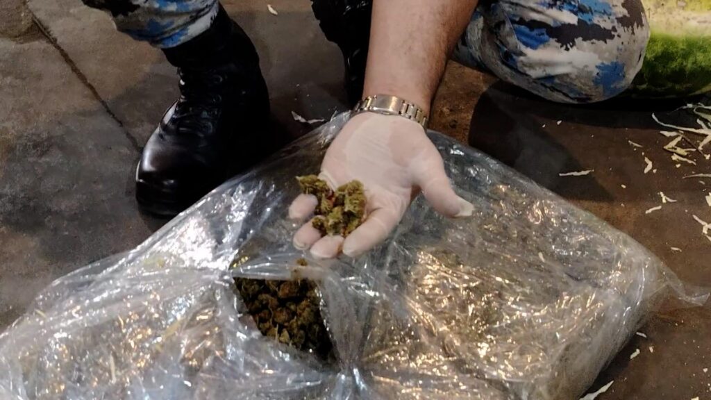 Daha ətraflı yoxlama zamanı kinoloji xidmət iti 16 paletə reaksiya verib. Həmin paletlərdəki qarpız yükünün altından, gömrük nəzarətindən gizlədilmiş 64 ədəd bağlamada, qablaşdırma ilə birlikdə ümumi çəkisi 207 kiloqram 620 qram olan marixuana aşkar edilib.