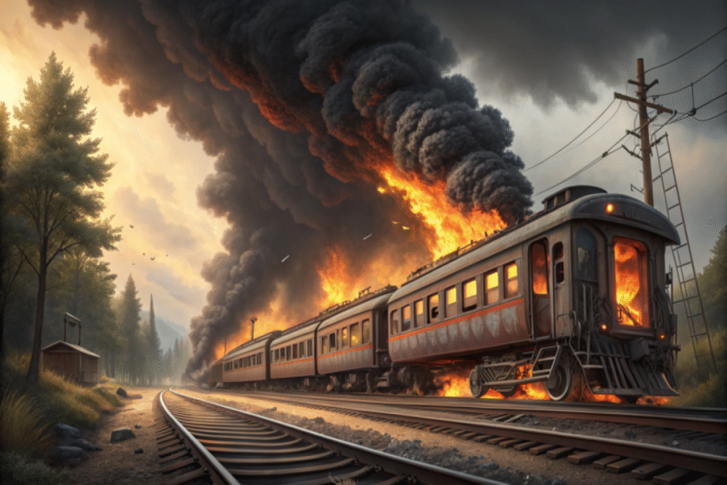 Texasda təhlükəli yük daşıyan qatar relsdən çıxaraq yanıb