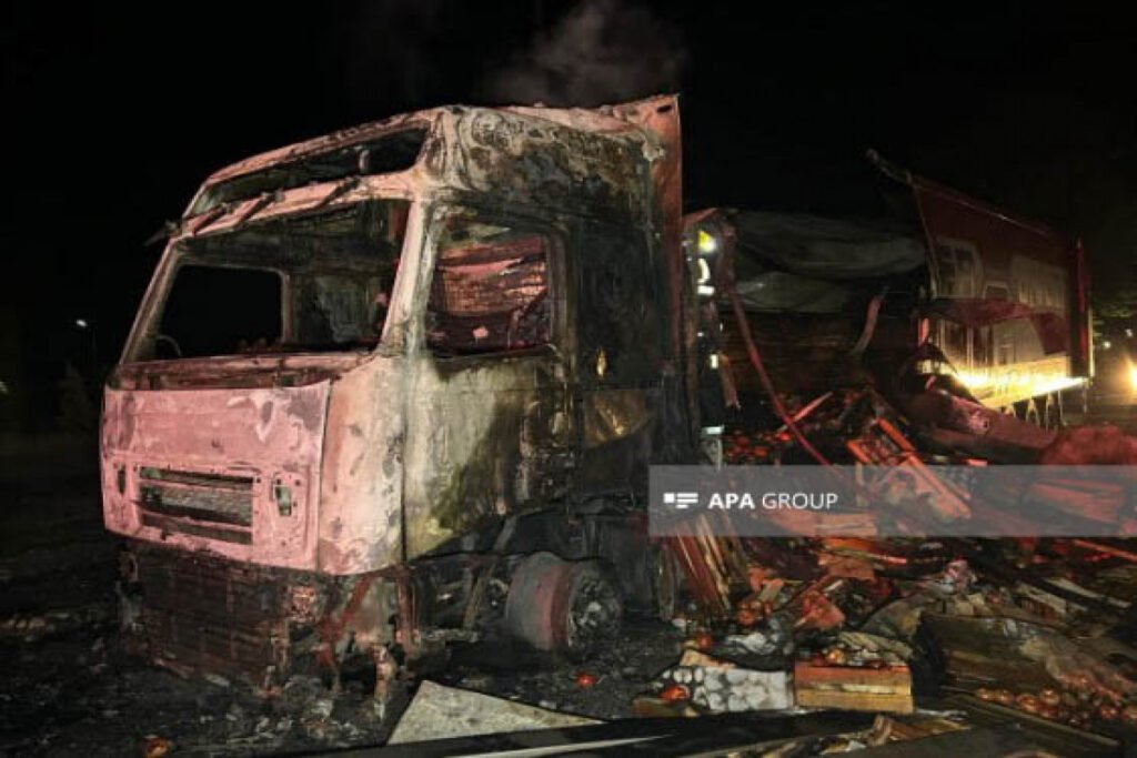 Ucarda iri tonnajlı yük avtomobili yanıb