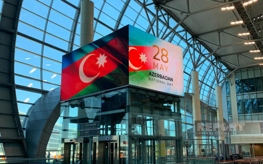 Azərbaycanın Müstəqillik Günü münasibətilə Domodedovo hava limanında xüsusi proyeksiya edilib