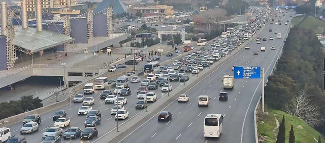 Bakının bir sıra yollarında nəqliyyatın sıxlığı müşahidə olunur.