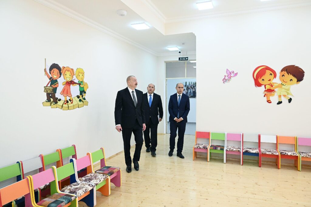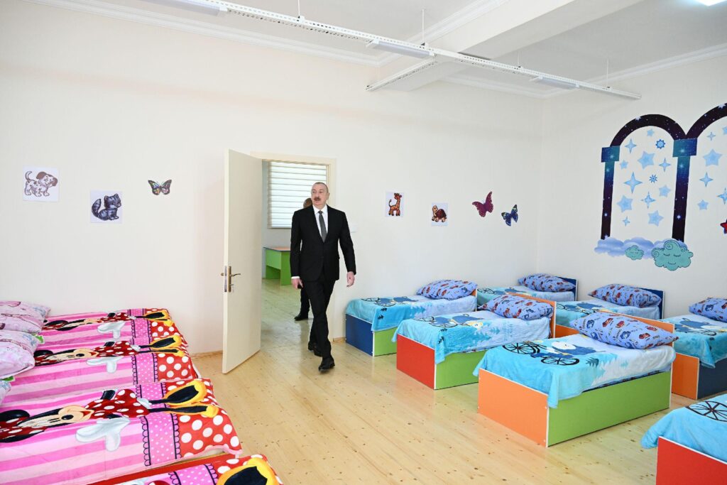 Dövlət başçısına məlumat verilib ki, müasir standartlara uyğun inşa edilmiş 120 yerlik körpələr evi-uşaq bağçasında azyaşlıların təlim-tərbiyəsi ilə məşğul olmaq, onların sağlam mənəvi və fiziki mühitdə yetişmələri üçün hər cür şərait var. Otaqların hamısı zəruri avadanlıqla təchiz olunub. Körpələr evi-uşaq bağçasında 6 qrup fəaliyyət göstərəcək.