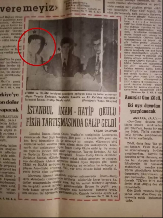 Bildirildiyinə görə, "Bizim Anadolu" qəzetində 53 il əvvəl Rəcəb Tayyib Ərdoğan və iki məktəb yoldaşının "Liseylərarası debat"a qatılmaları və birincilik qazanmaları ilə bağlı fotoreportaj oxuculara təqdim edilib. Xəbər "İstanbul İmam Hatip Okulu fikir mübadiləsində qalib gəldi" başlığı ilə verilib.