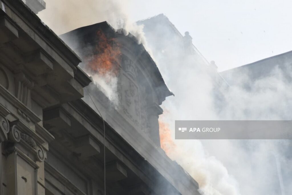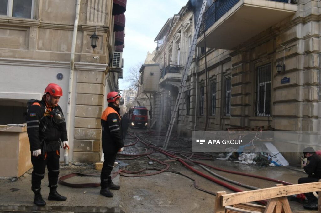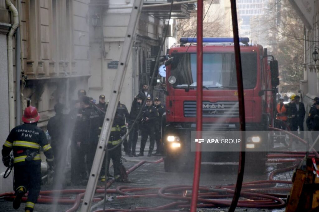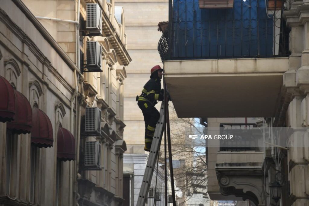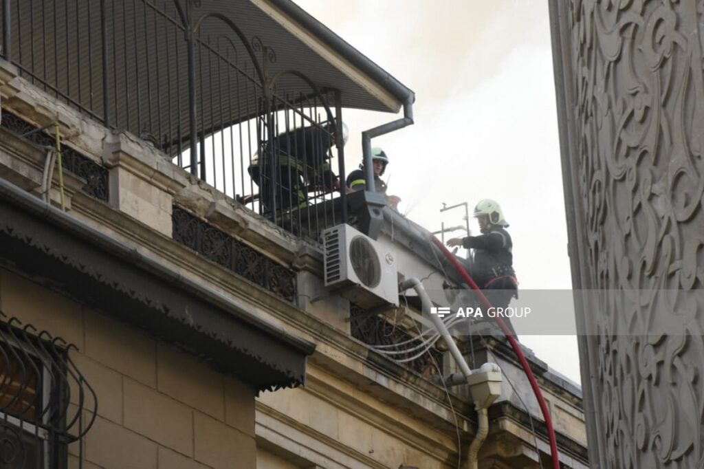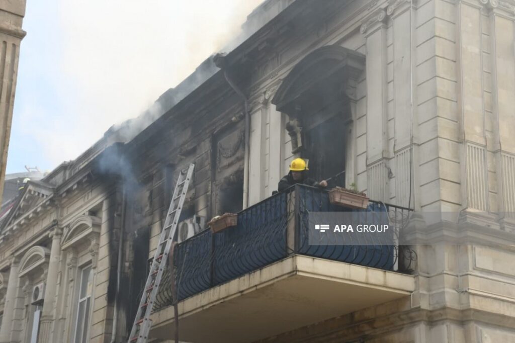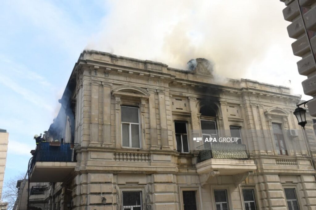 Bakının mərkəzində binada yanğın başlayıb.