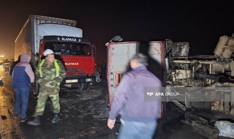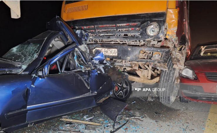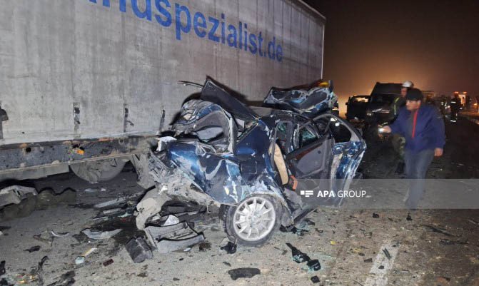 İlkin məlumata görə, 13 avtomobilin toqquşması nəticəsində 2 nəfər ölüb, 10-dan yuxarı şəxs xəsarət alıb.
