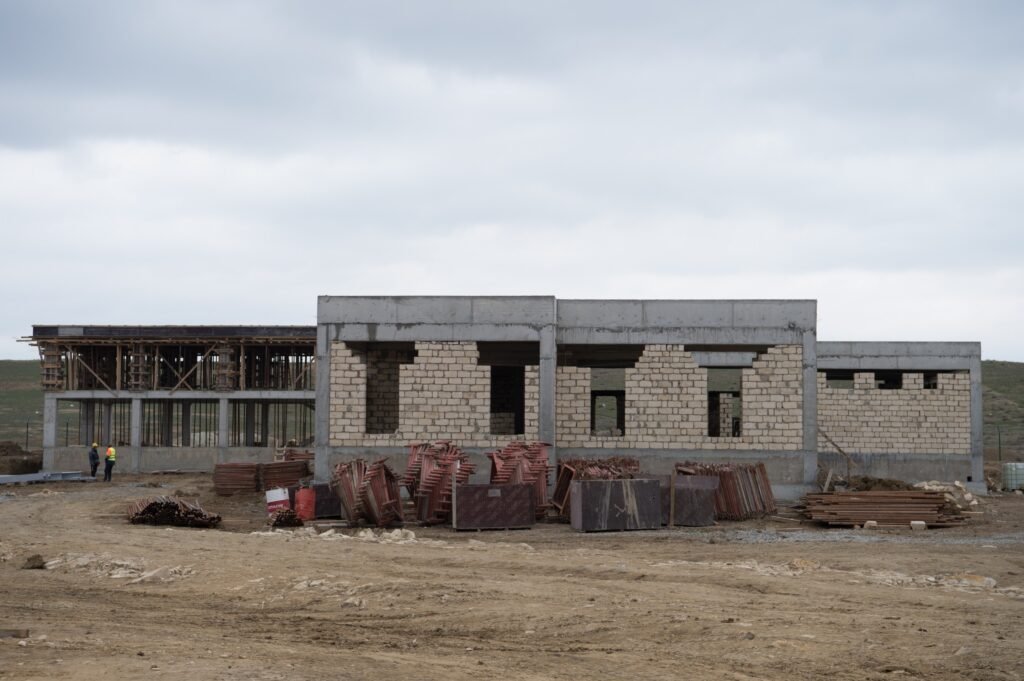 Havalandırma sistemli qum və yağ tutucuda döşəmənin inşası tamamlanıb, divarların dəmir-betonla hörülməsi davam etdirilir.