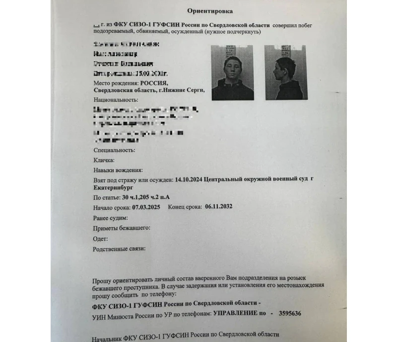 Rusiyanın Yekaterinburq şəhərində 1 saylı istintaq təcridxanasından iki məhbus qaçıb.