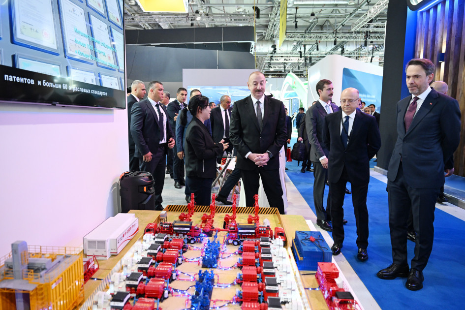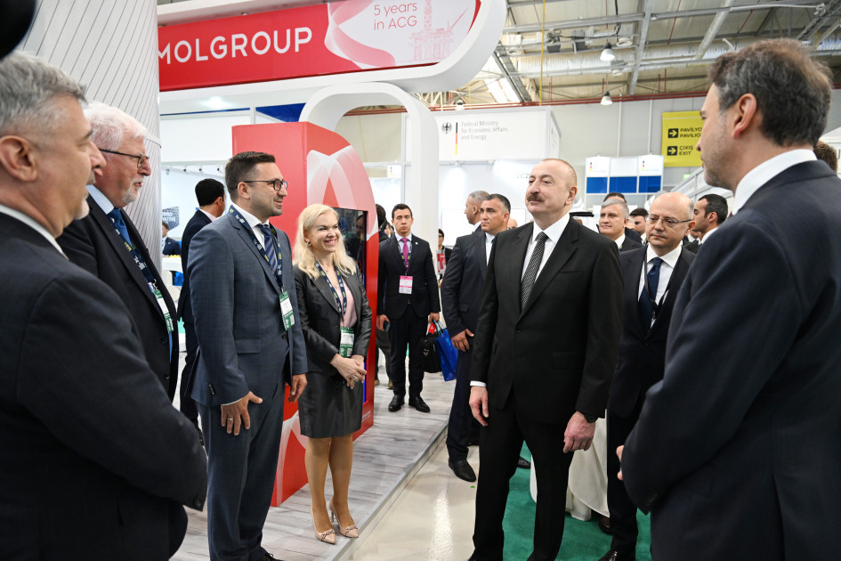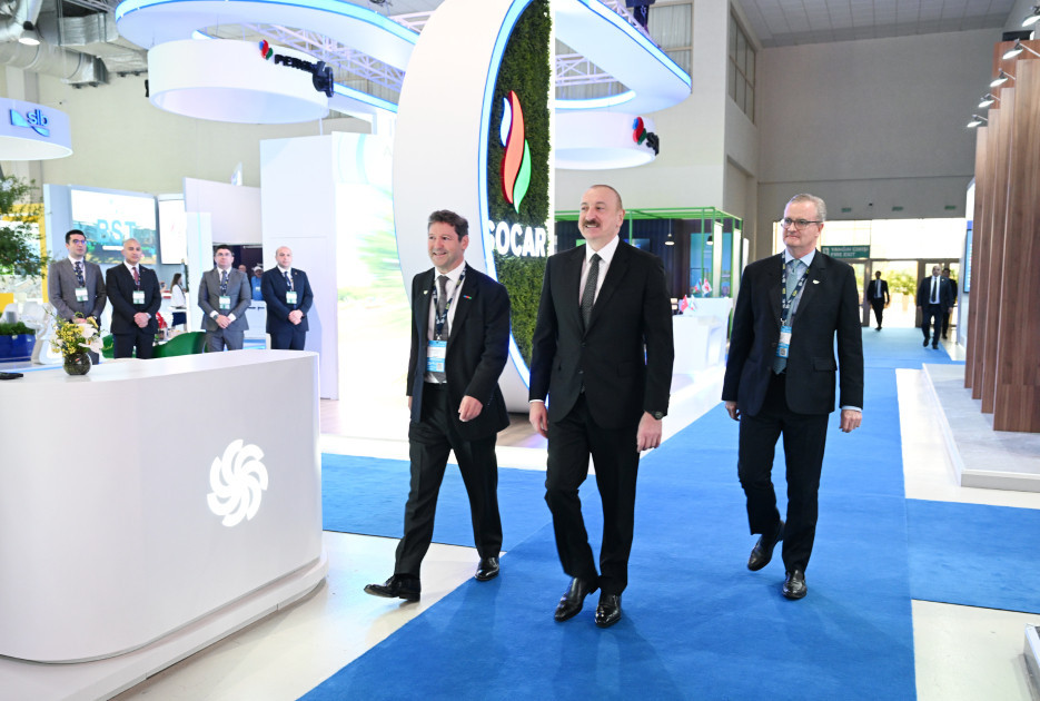 Dövlətimizin başçısı əvvəlcə Azərbaycanın və strateji tərəfdaşlarının enerji təhlükəsizliyinə mühüm töhfə verən SOCAR-ın stendinə baxdı. Bildirildi ki, SOCAR qlobal enerji şirkəti olaraq milli sərvətlərimizin beynəlxalq bazarlara çıxarılmasında strateji rol oynayır. Neft-qaz şirkətindən beynəlxalq enerji şirkətinə transformasiya istiqamətində məqsədyönlü fəaliyyətini davam etdirən SOCAR keyfiyyətli idarəetmə, şəffaflıq və müasir yanaşmalar əsasında enerji sektorundakı mövqeyini ardıcıl olaraq möhkəmləndirir. Axtarış-kəşfiyyat, hasilat, nəqletmə, emal, istehsal, marketinq, yanacağın pərakəndə satışı, qaz paylanması və bərpaolunan enerji mənbələrinin inkişafı kimi sahələrdə uğurla fəaliyyət göstərən şirkət rəqəmsallaşma, innovasiya, yaşıl enerjiyə keçid vasitəsilə davamlı inkişafı və dayanıqlı artımı təşviq edir. SOCAR, həmçinin iqlim dəyişikliyi ilə mübarizədə fəal iştirak edərək, ekoloji cəhətdən təmiz, aşağıkarbonlu və qabaqcıl texnologiyaların tətbiqinə üstünlük verir.