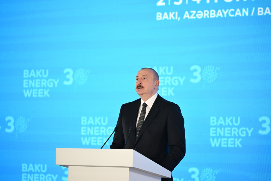 Azərbaycan Respublikasının Prezidenti İlham Əliyev Bakı Ekspo Mərkəzində Bakı Enerji Həftəsi çərçivəsində keçirilən 30-cu Yubiley Beynəlxalq Xəzər Neft və Qaz Sərgisi “Caspian Oil and Gas”, 13-cü Xəzər Beynəlxalq Energetika və Yaşıl Enerji Sərgisi “Caspian Power” və 30-cu Yubiley “Baku Energy Forum”un rəsmi açılış mərasimində çıxış edib.
