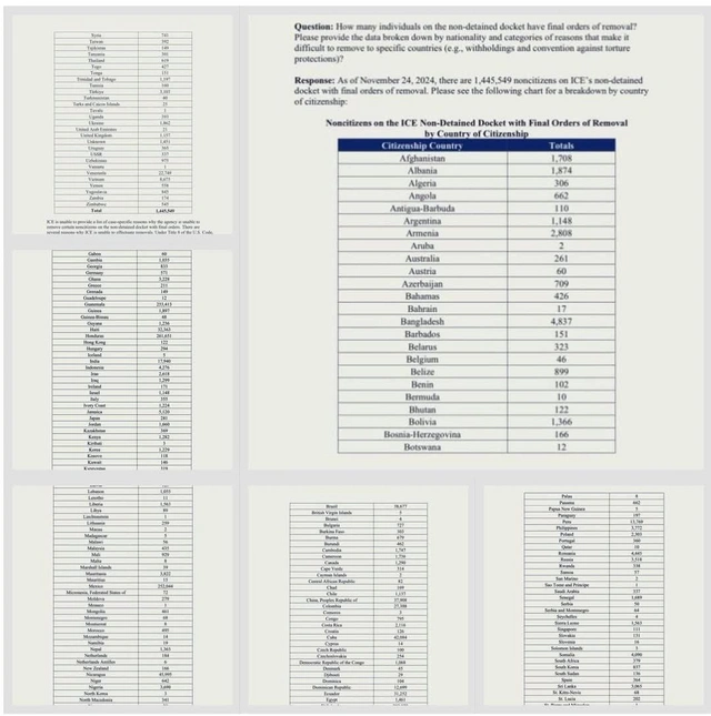 Qurumun hesabatına görə, ümumilikdə 1,4 milyondan çox insanın ölkədən deportasiya edilməsi planlaşdırılır. Onların arasında Honduras, Qvatemala, Salvador, Meksika, Nikaraqua, Kuba, Braziliya, Çin və Kolumbiya vətəndaşları üstünlük təşkil edir.