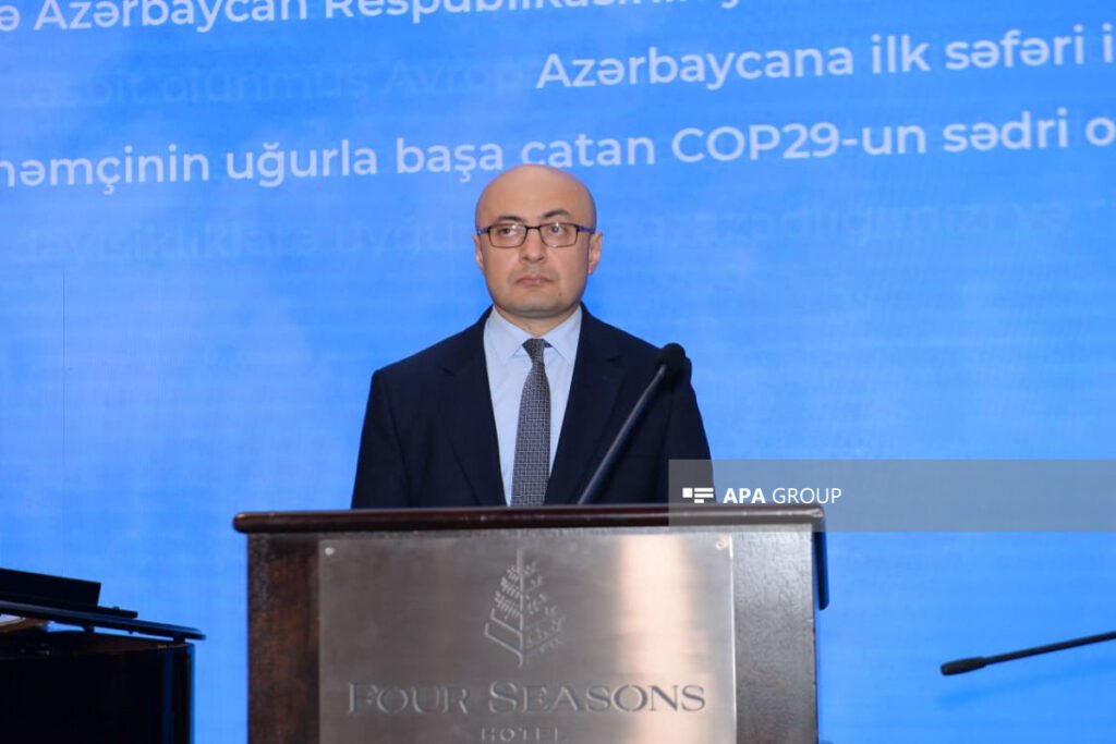 Sonra isə fəxri qonaq qismində dəvət olunan Azərbaycan Xarici İşlər Nazirliyinin iqtisadi əməkdaşlıq idarəsinin rəisi Elmar Məmmədov çıxış edib.